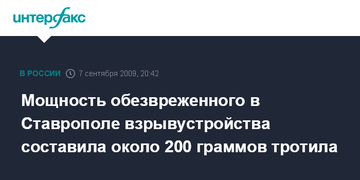 Мощность обезвреженного в Ставрополе взрывустройства составила около 200 граммов тротила