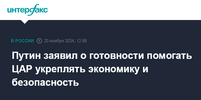Путин заявил о готовности помогать ЦАР укреплять экономику и безопасность