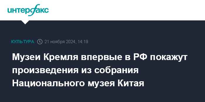 Музеи Кремля впервые в РФ покажут произведения из собрания Национального музея Китая