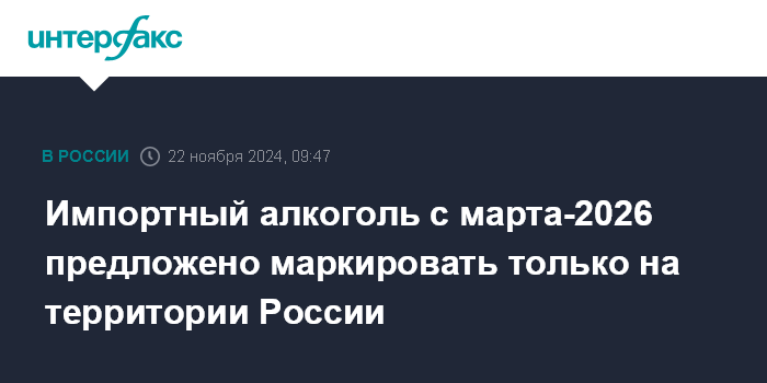 Импортный алкоголь с марта-2026 предложено маркировать только на территории России