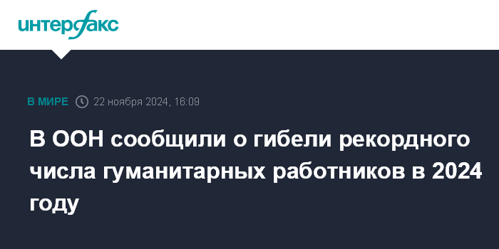 В ООН отмечают, что такие показатели вызваны, в частности, конфликтом в секторе Газа, где с 7 октября 2023 года по настоящее время погибли 320 гуманитарных работников. Большинство жертв работали в Ближневосточном агентстве ООН по помощи палестинским беженцам и организации работ (БАПОР).