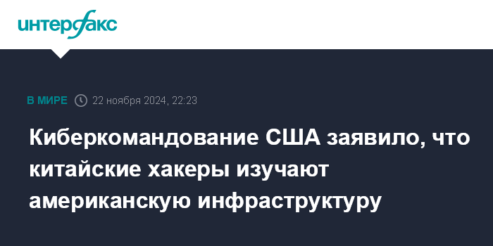 Киберкомандование США заявило, что китайские хакеры изучают американскую инфраструктуру