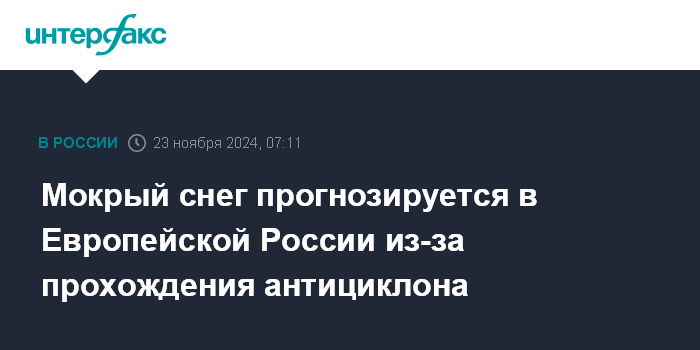 Мокрый снег прогнозируется в Европейской России из-за прохождения антициклона