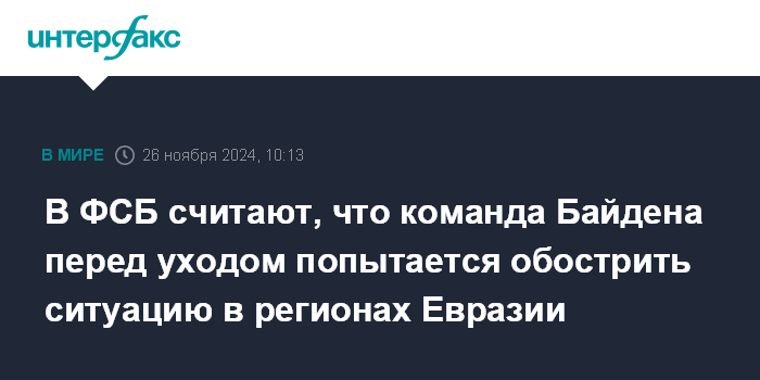 В ФСБ считают, что команда Байдена перед уходом попытается обострить ситуацию в регионах Евразии