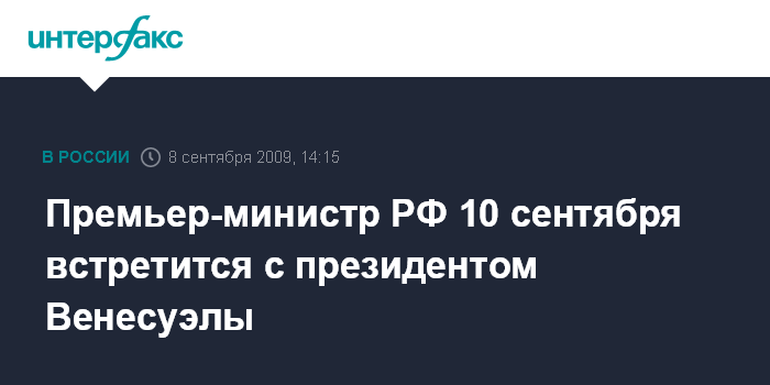 Премьер-министр РФ 10 сентября встретится с президентом Венесуэлы