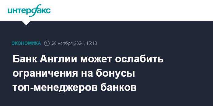 Банк Англии может ослабить ограничения на бонусы топ-менеджеров банков