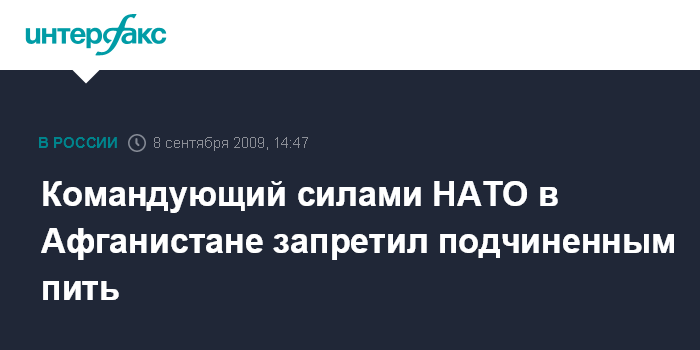 Командующий силами НАТО в Афганистане запретил подчиненным пить