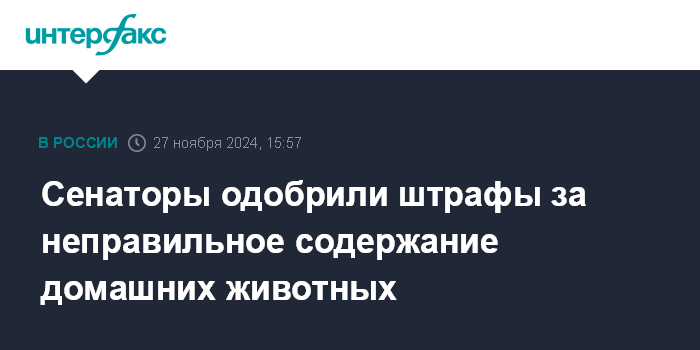 Москва. 27 ноября. INTERFAX.RU - Совет Федерации одобрил закон об административной ответственности за несоблюдение требований к содержанию домашних животных.