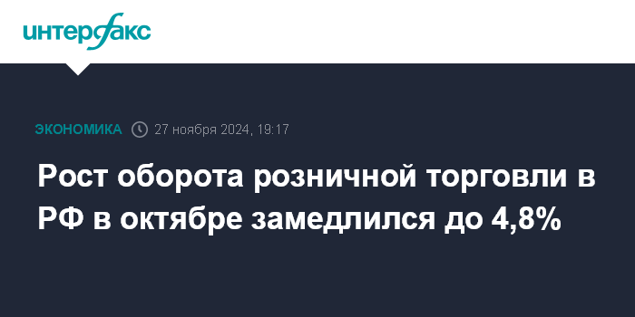 Рост оборота розничной торговли в РФ в октябре замедлился до 4,8%