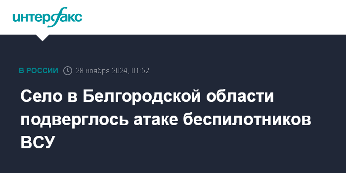 Москва. 28 ноября. INTERFAX.RU - Белгородский губернатор Вячеслав Гладков сообщил об атаке украинских дронов на село Нижнее Берёзово-Второе.