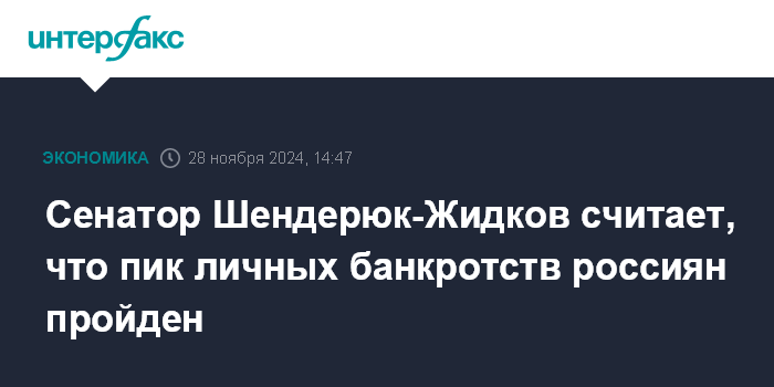 Сенатор Шендерюк-Жидков считает, что пик личных банкротств россиян пройден