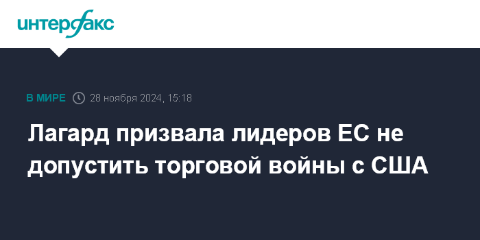 Лагард призвала лидеров ЕС не допустить торговой войны с США