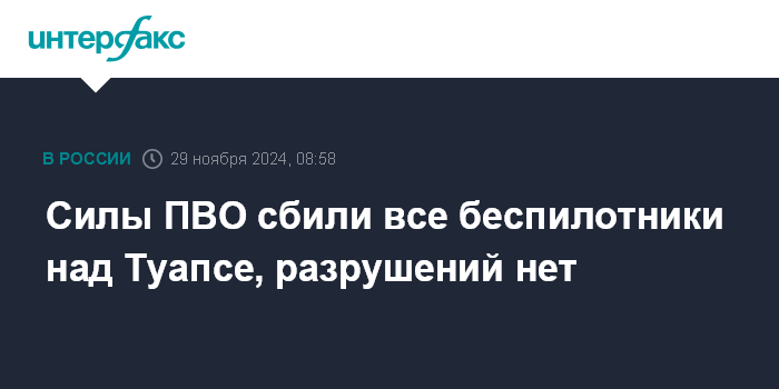 Силы ПВО сбили все беспилотники над Туапсе, разрушений нет