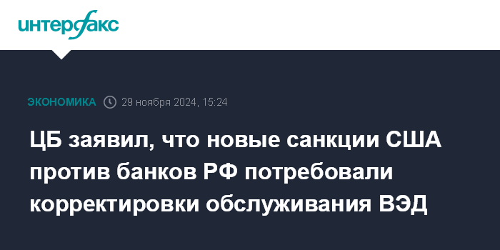 ЦБ заявил, что новые санкции США против банков РФ потребовали корректировки обслуживания ВЭД