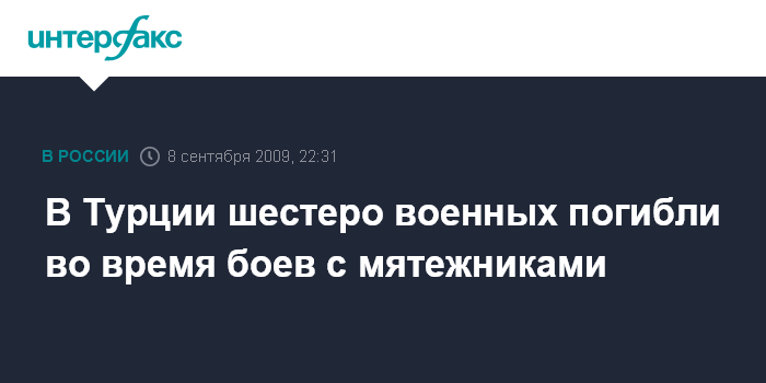 Стамбул. 8 сентября. ИНТЕРФАКС - Минимум шестеро турецких военнослужащих погибли во время боев с мятежниками-курдами, объявило во вторник военное командование. Еще трое получили ранения.