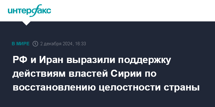 РФ и Иран выразили поддержку действиям властей Сирии по восстановлению целостности страны