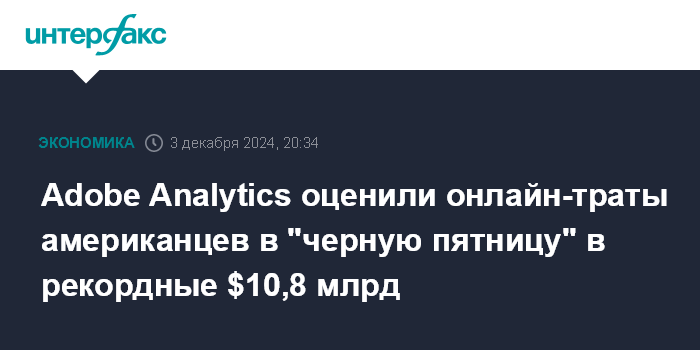 Москва. 3 декабря. INTERFAX.RU - Совокупные онлайн-покупки американцев в "черную пятницу", следующий за Днем благодарения день, достигли нового рекорда, говорится в отчете Adobe Analytics. Объем расходов составил $10,8 млрд, что на 10,2% выше, чем годом ранее.