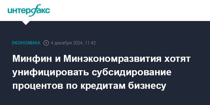 Минфин и Минэкономразвития хотят унифицировать субсидирование процентов по кредитам бизнесу