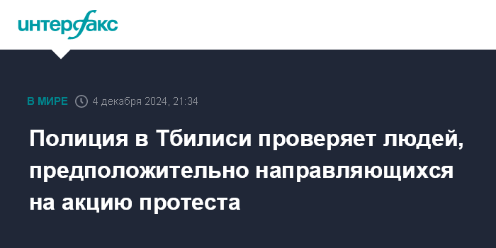 Москва. 4 декабря. INTERFAX.RU - Сотрудники грузинской полиции проверяют людей, направляющихся на проспект Руставели, где в вечерние часы проходят акции перед зданием парламента Грузии, сообщают местные СМИ.