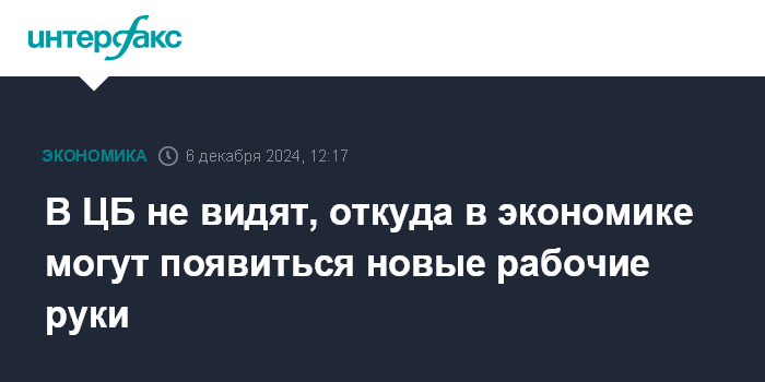 В ЦБ не видят, откуда в экономике могут появиться новые рабочие руки