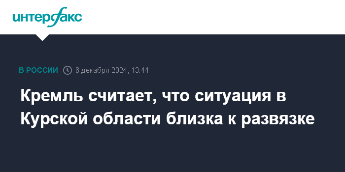 Москва. 6 декабря. INTERFAX.RU - В Кремле считают, что ситуация в Курской области близка к развязке, но время покажет, когда она будет нормализована.