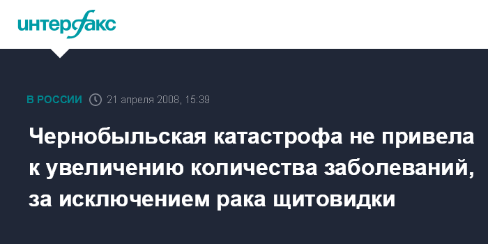 Вместе с тем он отметил, что заболеваемость раком щитовидной железы у детей в районах, пострадавших в результате чернобыльской катастрофы, увеличилась в 100-200 раз.