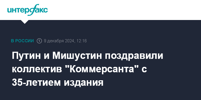 Путин и Мишустин поздравили коллектив "Коммерсанта" с 35-летием издания