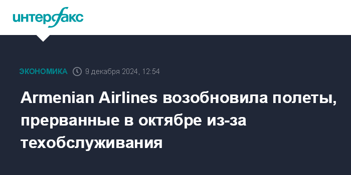 Armenian Аirlines возобновила полеты, прерванные в октябре из-за техобслуживания
