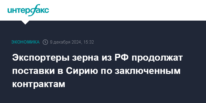 Экспортеры зерна из РФ продолжат поставки в Сирию по заключенным контрактам