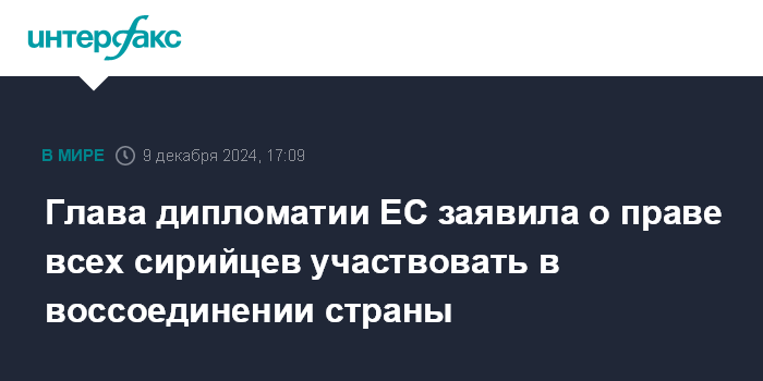 Глава дипломатии ЕС заявила о праве всех сирийцев участвовать в воссоединении страны