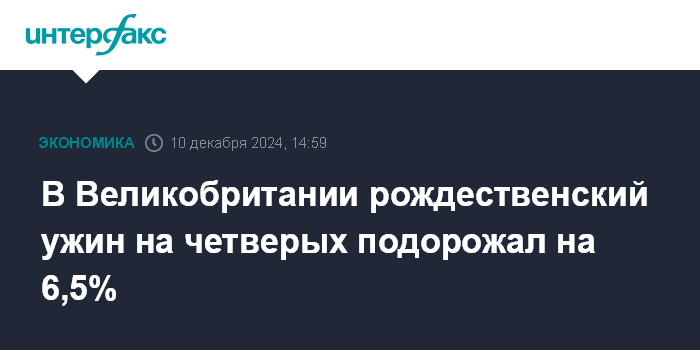 В Великобритании рождественский ужин на четверых подорожал на 6,5%