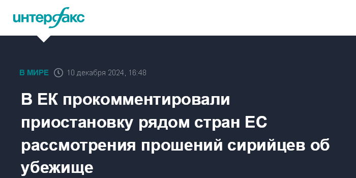 Так он отреагировал на просьбы прокомментировать решения ряда стран ЕС приостановить рассмотрения просьб беженцев из Сирии об убежище в Евросоюзе и намерения отдельных государств возвращать сирийцев на родину после смены власти в Дамаске.