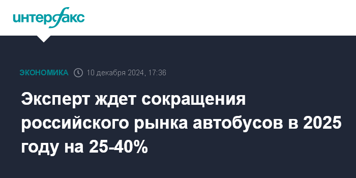 Эксперт ждет сокращения российского рынка автобусов в 2025 году на 25-40%