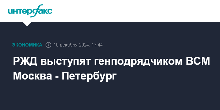 Москва. 10 декабря. INTERFAX.RU - ОАО "Российские железные дороги" и компания-концессионер ООО "ВСМ Две столицы" заключили договор генерального подряда на строительство основного концессионного участка высокоскоростной железнодорожной магистрали (ВСМ) Москва - Санкт-Петербург, сообщили РЖД.