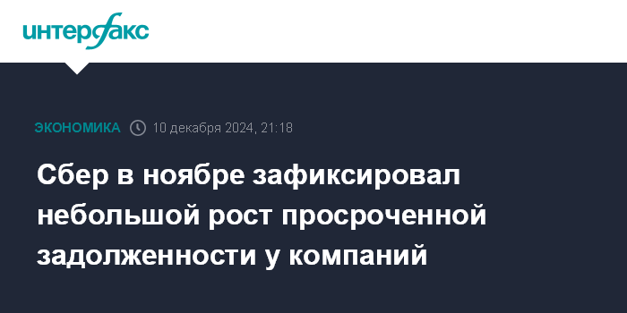 Сбер в ноябре зафиксировал небольшой рост просроченной задолженности у компаний