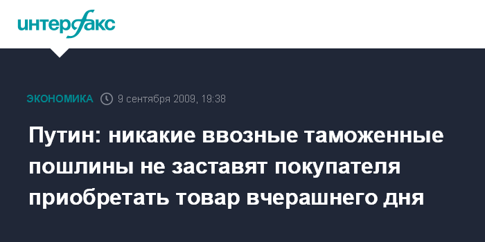 Путин: никакие ввозные таможенные пошлины не заставят покупателя приобретать товар вчерашнего дня