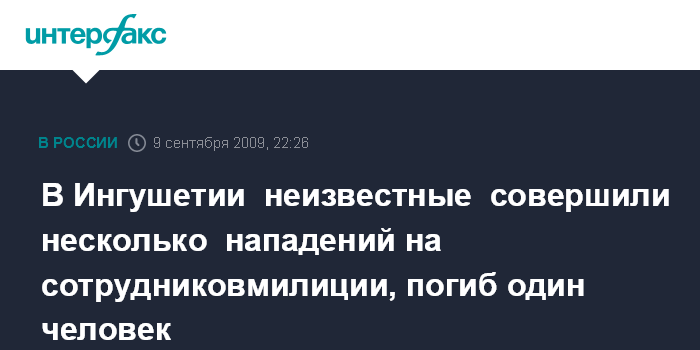 В Ингушетии неизвестные совершили несколько нападений на сотрудниковмилиции, погиб один человек