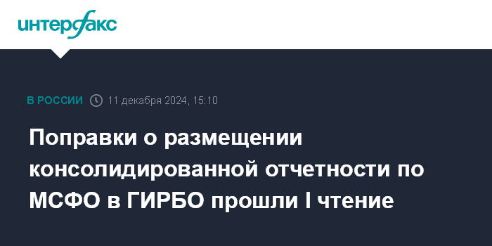 Поправки о размещении консолидированной отчетности по МСФО в ГИРБО прошли I чтение