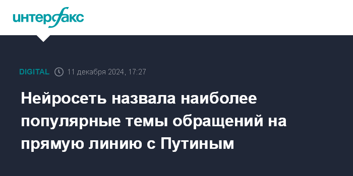 Нейросеть назвала наиболее популярные темы обращений на прямую линию с Путиным