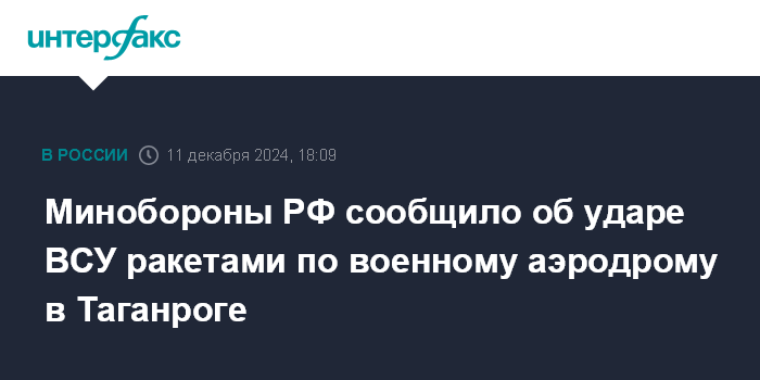 "Утром 11 декабря 2024 года киевский режим нанес ракетный удар западным высокоточным оружием по военному аэродрому Таганрог на территории Ростовской области. В ходе проведенного разбирательства достоверно установлено, что были применены шесть баллистических ракет ATACMS американского производства", - заявили в Минобороны РФ.