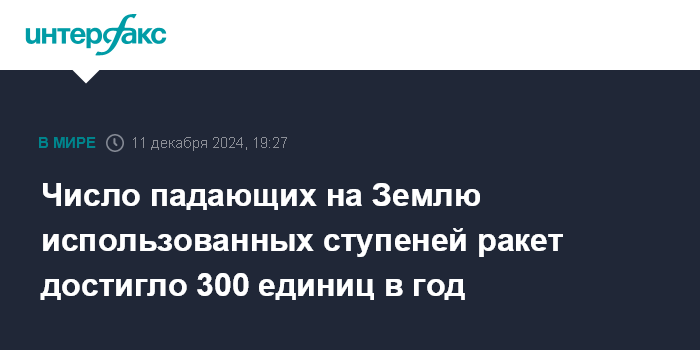 Число падающих на Землю использованных ступеней ракет достигло 300 единиц в год