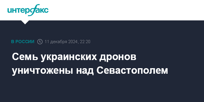 Москва. 11 декабря. INTERFAX.RU - Силы ПВО и Черноморского флота уничтожили семь дронов ВСУ над Севастополем, сообщил губернатор Михаил Развожаев в своем телеграм-канале.