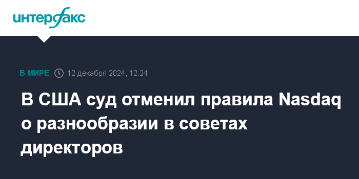 Суд в Новом Орлеане встал на сторону двух консервативных групп, подавших иск к Комиссии по ценным бумагам и биржам (SEC), которая в 2021 году одобрила предложенные Nasdaq правила. Первое из двух правил требует от компаний с листингом на бирже раскрывать статистику о гендерном и расовом составе советов директоров. Второе правило, вводившееся поэтапно в течение нескольких лет, устанавливает нормы по разнообразию в советах, требуя от компаний объяснений в случае их несоблюдения.