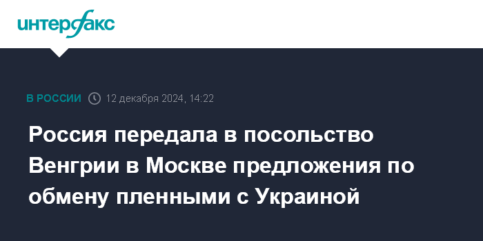 Россия передала в посольство Венгрии в Москве предложения по обмену пленными с Украиной