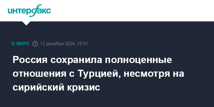 Россия сохранила полноценные отношения с Турцией, несмотря на сирийский кризис
