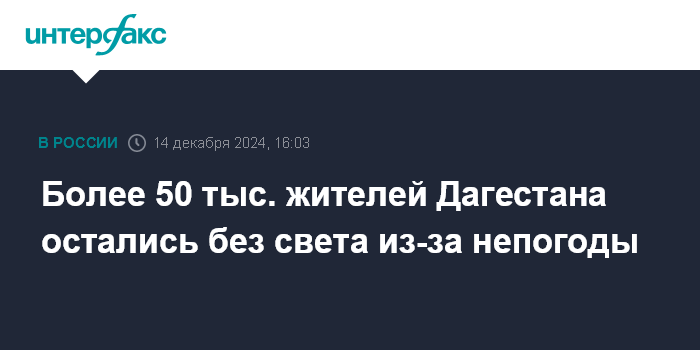 Более 50 тыс. жителей Дагестана остались без света из-за непогоды