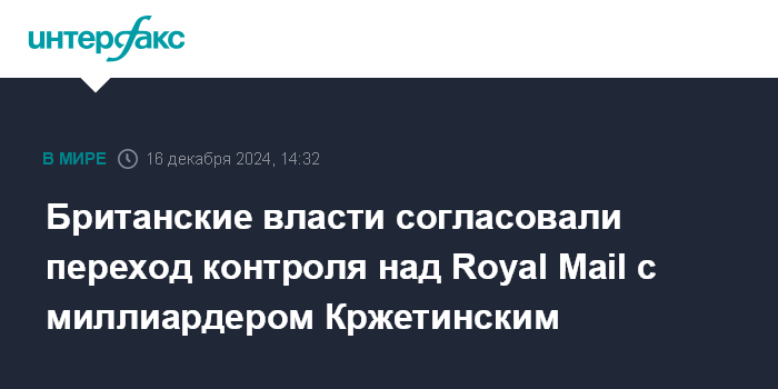 Британские власти согласовали переход контроля над Royal Mail с миллиардером Кржетинским