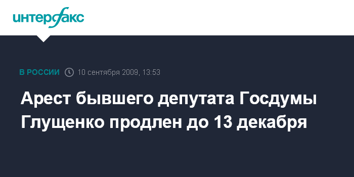 Москва. 10 сентября. INTERFAX.RU - Срок содержания под стражей бывшего депутата Госдумы Михаила Глущенко продлен до 13 декабря, сообщил "Интерфаксу" в четверг его адвокат Юрий Хабаров. "Суд по ходатайству следствия продлил арест до 13 декабря. СКП мотивировал это тем, что им необходимо провести еще ряд экспертиз, получить ответы на запросы из правоохранительных органов разных стран, допросить порядка 20 свидетелей", - сказал Хабаров. Отвечая на вопрос, работают ли с Глущенко следователи по делу об убийстве Галины Старовойтовой, о возобновлении производства которого стало известно в понедельник, Хабаров сказал: "Кроме единственного допроса в качестве свидетеля, оперативные сотрудники ФСБ к нам не обращались".