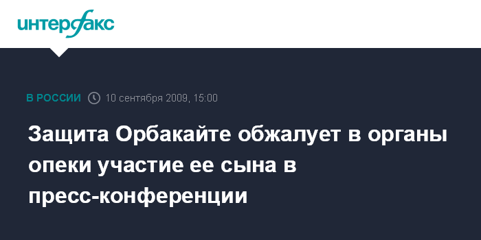 Москва. 10 сентября. INTERFAX.RU - Адвокат певицы Кристины Орбакайте подает заявление в органы опеки и попечительства в связи с неправомерными действиями экс-супруга ее доверительницы предпринимателя Руслана Байсарова, который провело пресс-конференцию с участием их общего сына. "Сейчас я еду в органы опеки и попечительства Тверского района, чтобы сообщить о том, что произошло сегодня. Я намерена подать заявление о неправомерных действиях со стороны отца, который нарушает психику ребенка", - заявил "Интерфаксу" адвокат Орбакайте Татьяна Акимцева. При этом она подчеркнула, что участие ребенка в пресс-конференции "является издевательством над ребенком и травмирует его психику". "Я не исключаю обращение и в органы прокуратуры, поскольку это нарушение прав ребенка", - отметила адвокат.