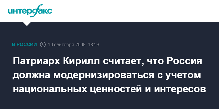 Патриарх Кирилл считает, что Россия должна модернизироваться с учетом национальных ценностей и интересов